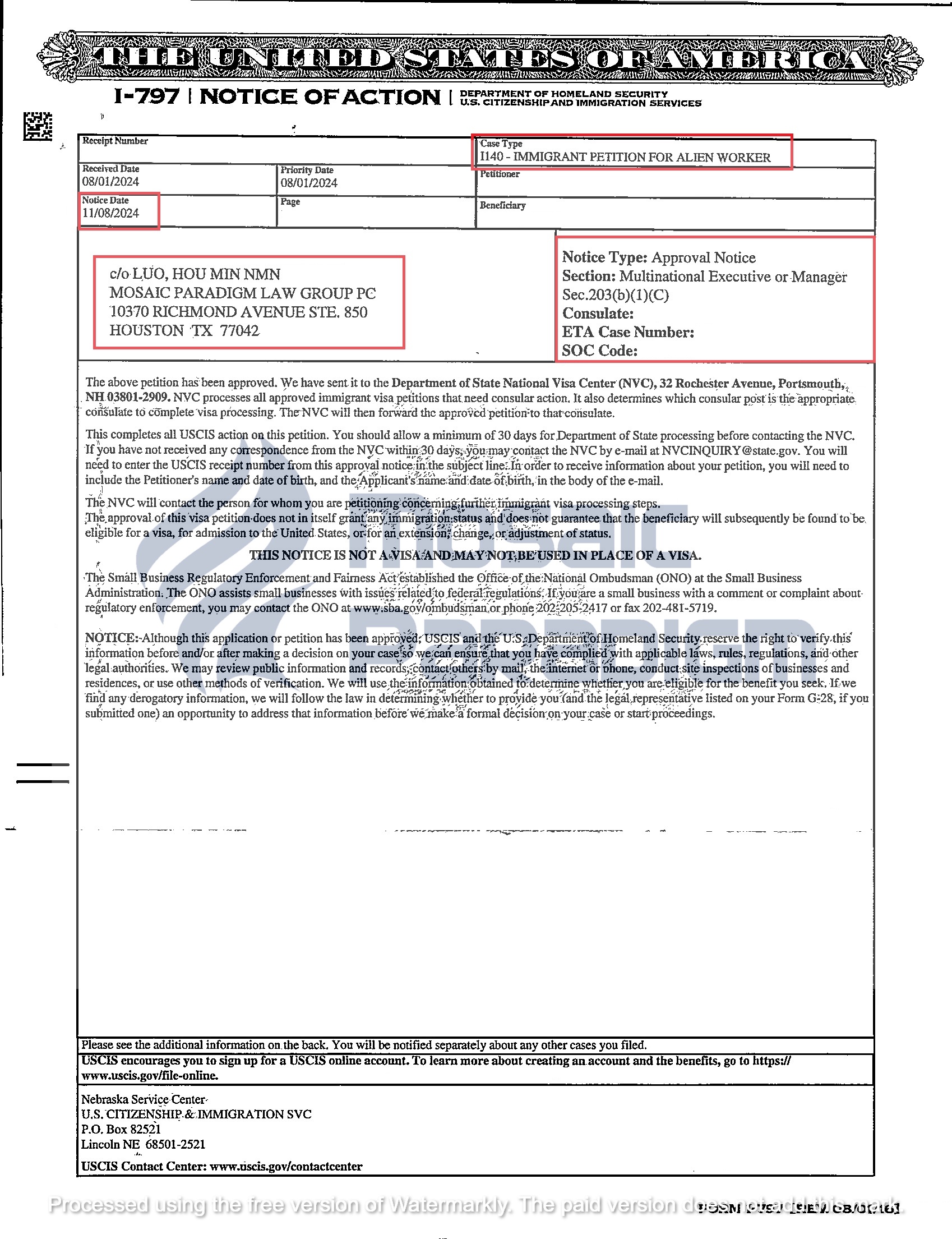 Mosaic Paradigm trân trọng chúc mừng nhà quản lý cấp cao của tập đoàn đa quốc gia và cũng là quý khách hàng lớn của chúng tôi đã thành công đạt được phê duyệt hồ sơ định cư diện EB-1C chỉ sau 3 tháng xét duyệt từ USCIS!