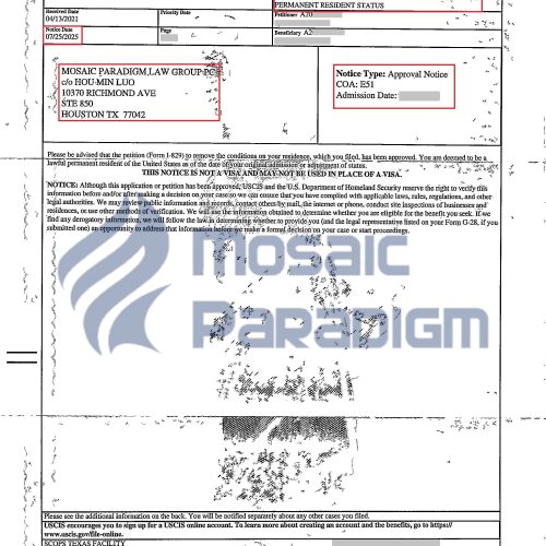 THÀNH CÔNG CẤP LẠI THẺ XANH CÓ ĐIỀU KIỆN CHO KHÁCH HÀNG EB-5! Tháng 7 22, 2025 By Mosaic Paradigm Vietnam