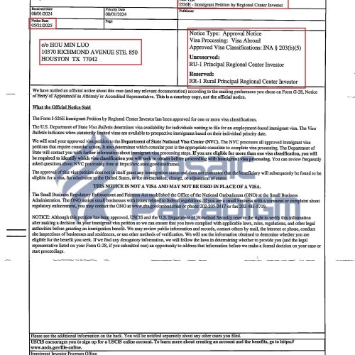 TIN VUI TỪ USCIS: 5 ĐƠN I-526E ĐƯỢC PHÊ DUYỆT THÀNH CÔNG