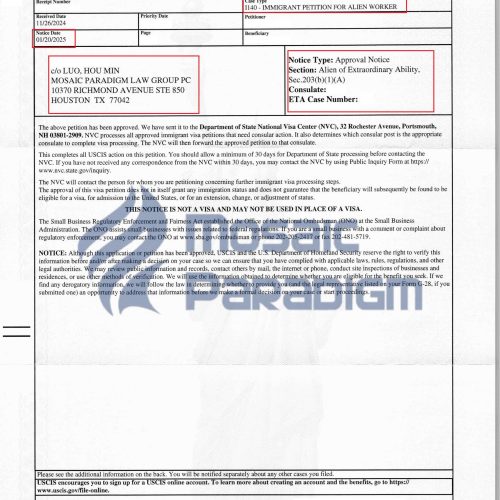 CHÚC MỪNG KHÁCH HÀNG EB-1A NHẬN ĐƯỢC CHẤP THUẬN ĐƠN I-140