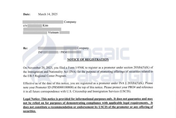 Mosaic Paradigm xin chúc mừng các đối tác đã chính thức nhận được chấp thuận Đơn I-956K từ Sở Di trú và Nhập tịch Hoa Kỳ (USCIS) – một bước…