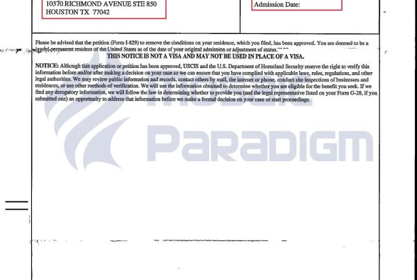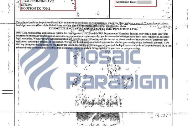 Tin vui từ đội ngũ Mosaic Paradigm của chúng tôi! Khách hàng là nhà đầu tư EB-5 đã bị mất thẻ xanh có điều kiện (2 năm) do sự cố…