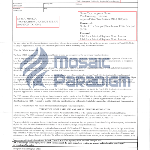 TIN VUI TỪ USCIS: 5 ĐƠN I-526E ĐƯỢC PHÊ DUYỆT THÀNH CÔNG