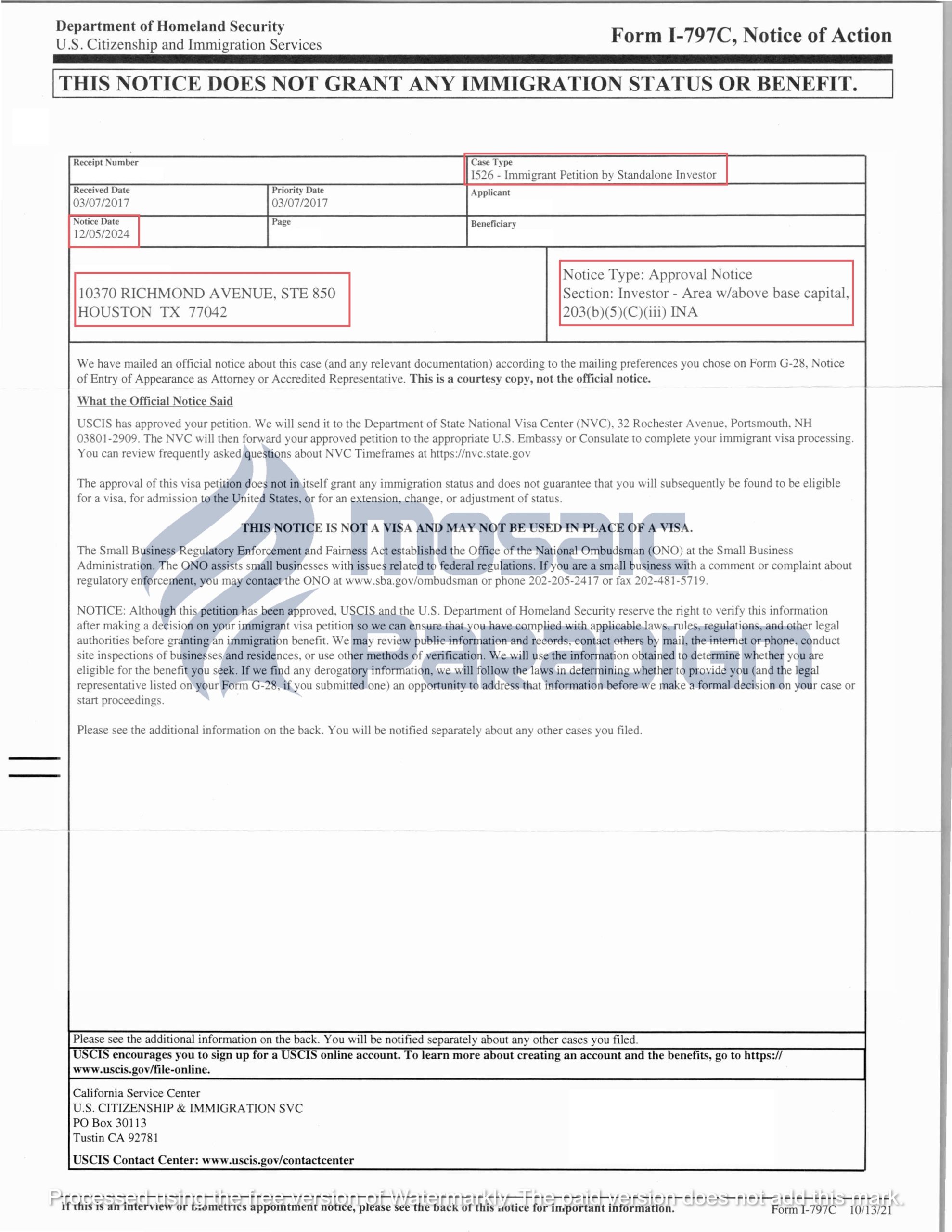 CHÀO NĂM 2025 VỚI 3 ĐƠN I-526 ĐẠT CHẤP THUẬN THÀNH CÔNG : 06/12/2024