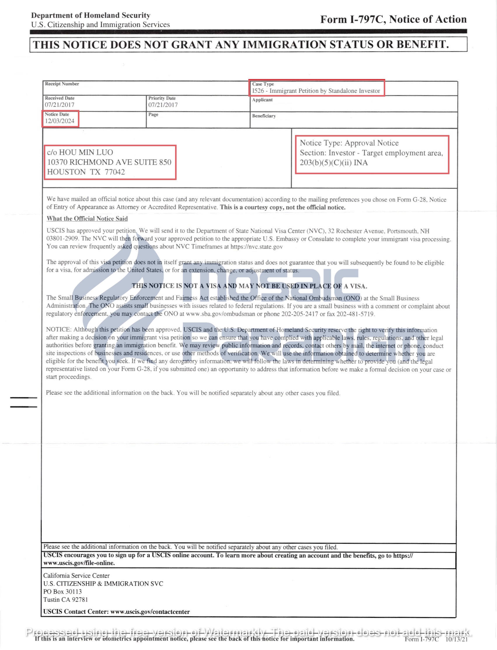 Xin chúc mừng 3 nhà đầu tư EB-5 xuất sắc đạt được chấp thuận đơn I-526 thành công!