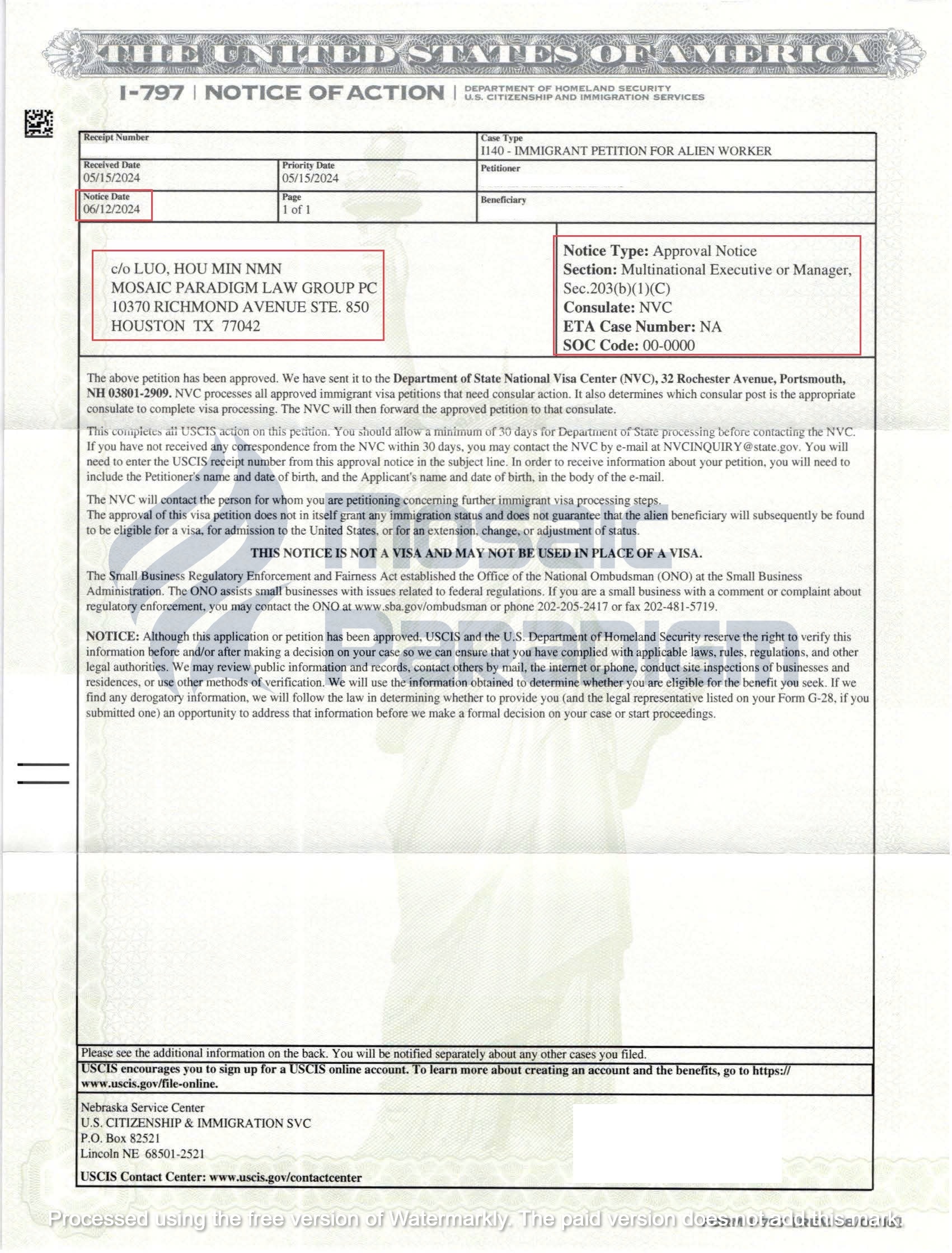 CHÚC MỪNG ĐƠN I-140 DIỆN EB-1A ĐƯỢC CHẤP THUẬN THÀNH CÔNG