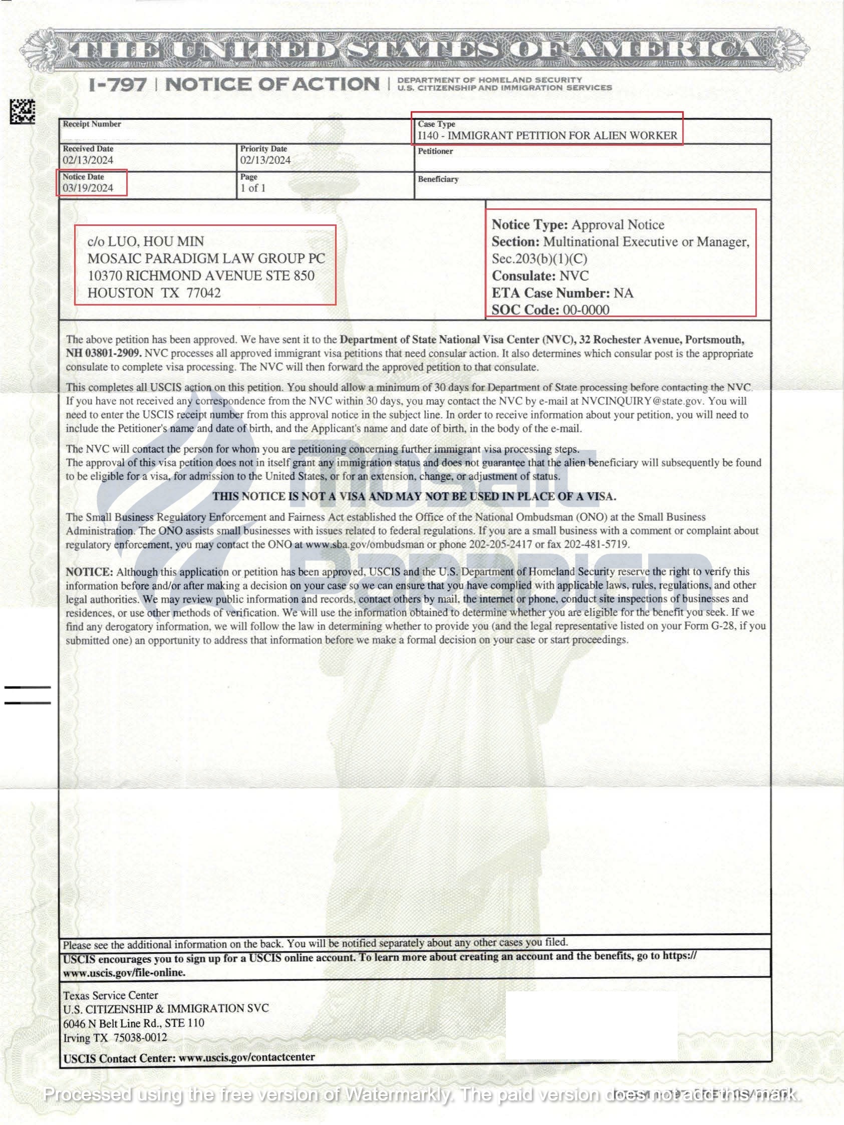 CHÚC MỪNG ĐƠN I-140 DIỆN EB-1A ĐƯỢC CHẤP THUẬN THÀNH CÔNG