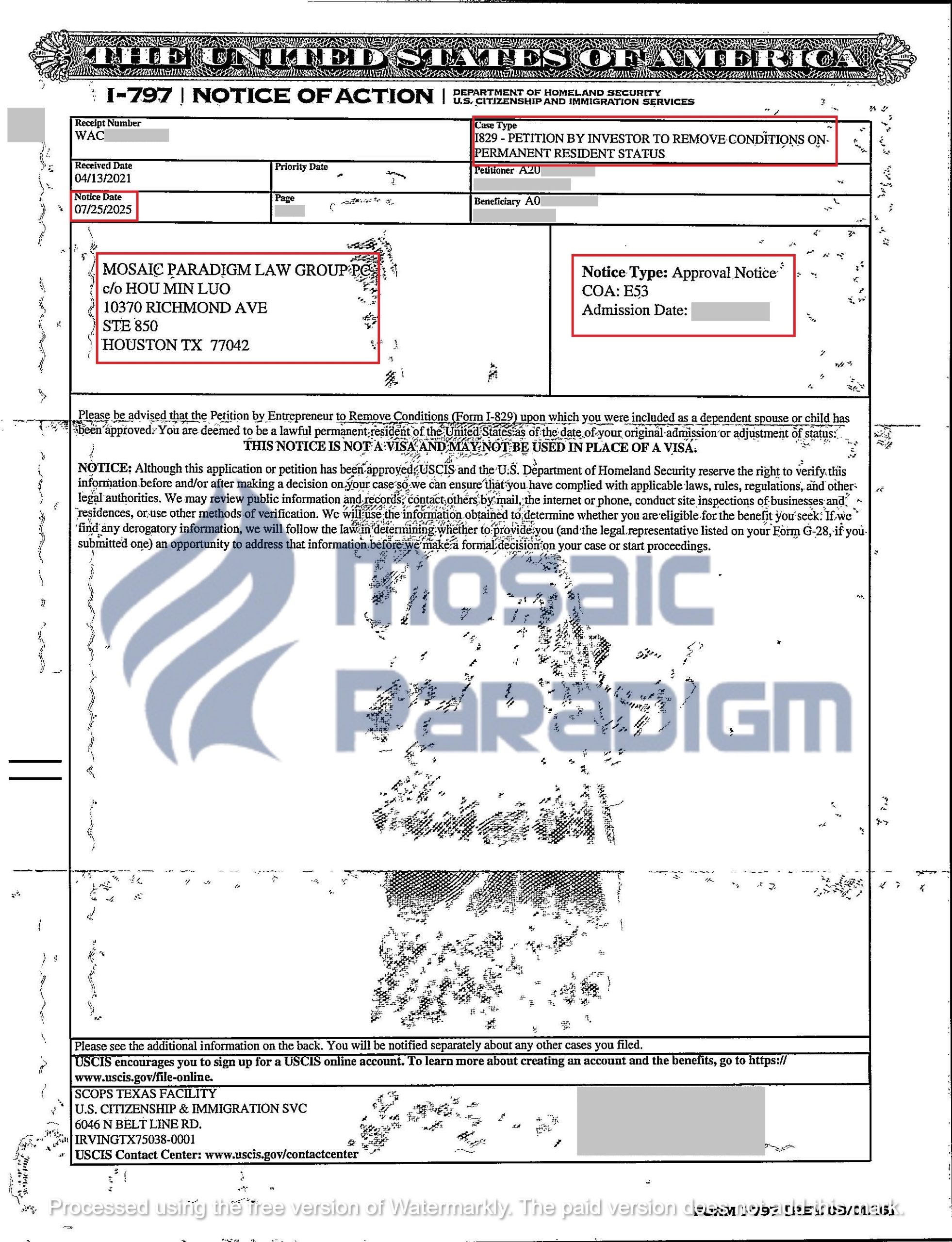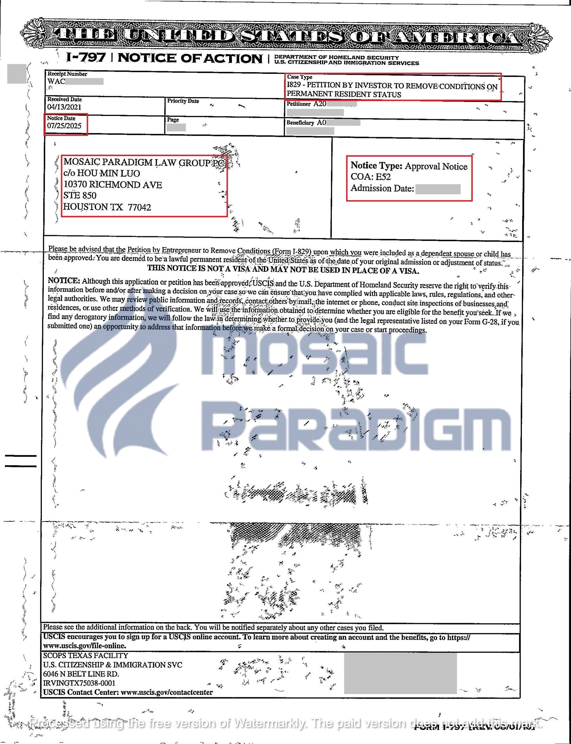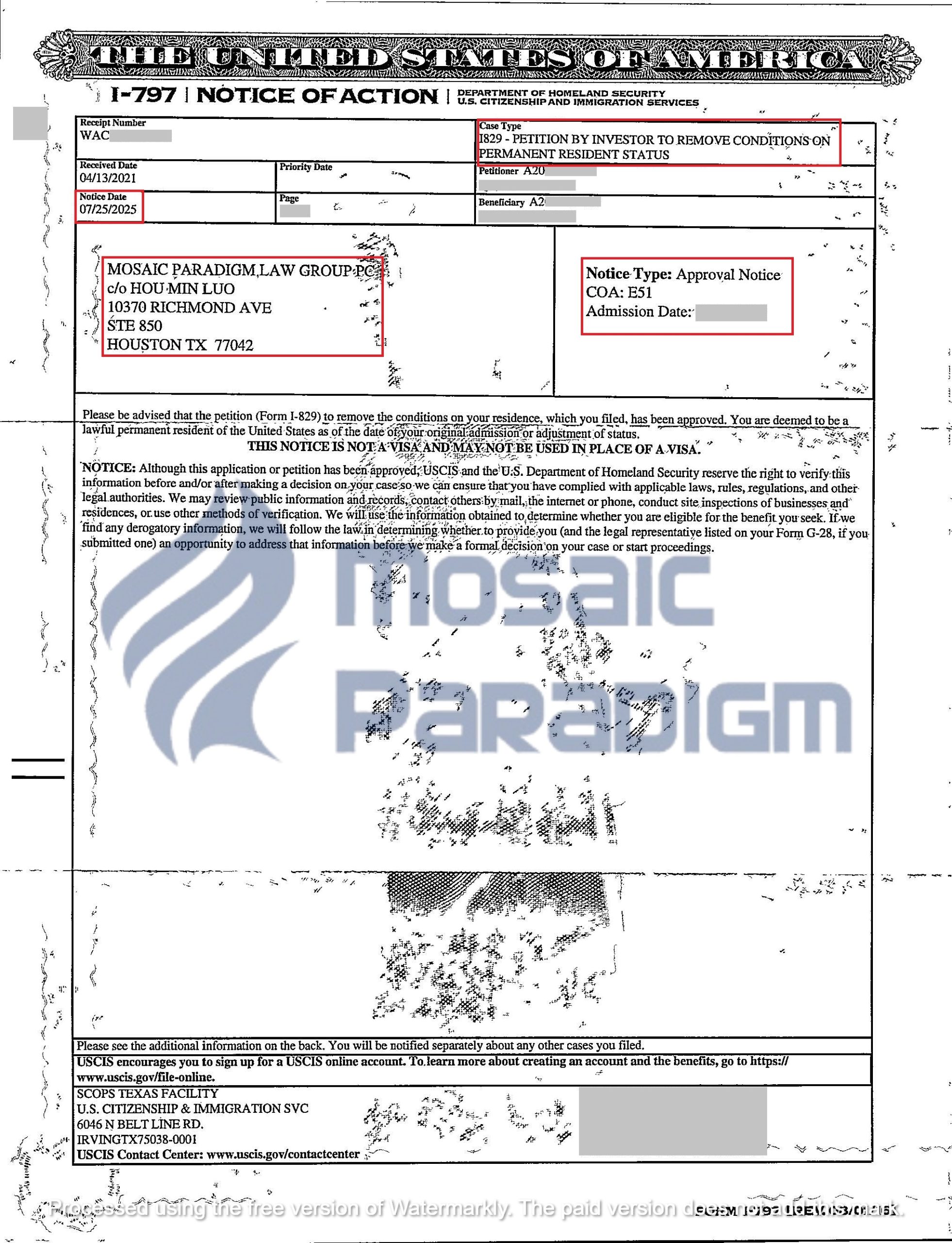 Chúng tôi vui mừng thông báo một cột mốc quan trọng trong lộ trình định cư Hoa Kỳ của nhà đầu tư EB-5 và gia đình: Đơn I-829 – Đơn Yêu Cầu Xóa Điều Kiện Cư Trú Có Điều Kiện Dành Cho Nhà Đầu Tư Di Dân – đã chính thức được Sở Di trú và Nhập tịch Hoa Kỳ (USCIS) phê duyệt.