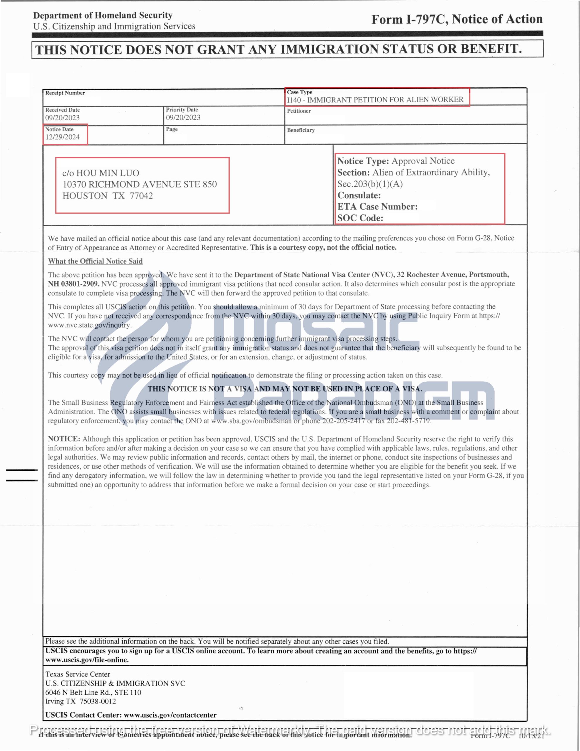 Thời gian xét duyệt: 1 năm 3 tháng | Trung tâm xét duyệt: Trung tâm Dịch vụ Texas |