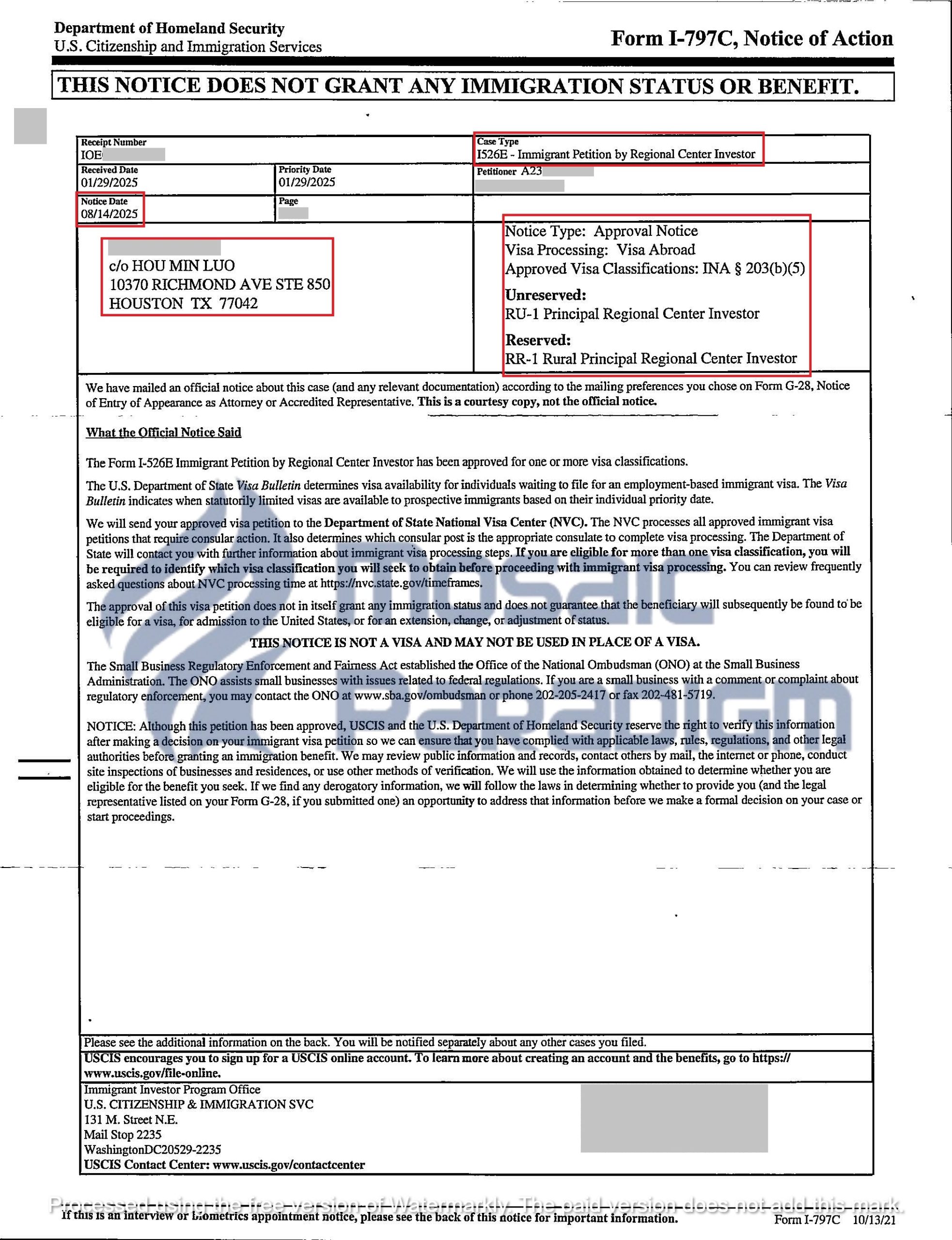 Mosaic Paradigm mừng Quốc Khánh 2/9 với thông báo 5 đơn I-526E đã được Sở Di trú Hoa Kỳ (USCIS) chấp thuận trong cùng một thời điểm – đánh dấu một bước tiến quan trọng trong hành trình hiện thực hóa ước mơ định cư Hoa Kỳ của các Nhà đầu tư thông qua chương trình EB-5.