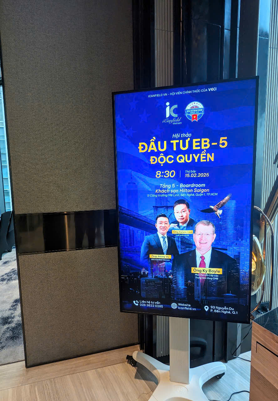 Vừa qua, Luật sư Kelvin Luo của Mosaic Paradigm đã tham gia sự kiện đầu tư định cư EB-5 do iCanfield Vietnam tổ chức tại Hilton Saigon. Luật sư Kelvin đã có những chia sẻ chuyên sâu về chương trình EB-5 cũng như những tác động của chính sách di trú trong thời gian sắp tới dưới thời Trump 2.0