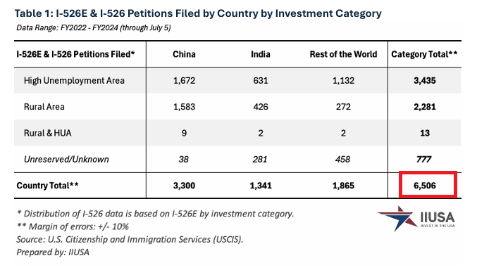 Theo báo cáo mới nhất về xu hướng thụ lý đơn I-526E của IIUSA, kể từ khi Đạo luật Cải cách và Liêm chính EB-5 (RIA) 2022 được thông qua, nhu cầu toàn cầu đối với chương trình EB- 5 đã tăng một cách đáng kể, đặc biệt là trong năm tài chính FY-2023 và FY-2024, với 6.506 tổng số đơn I-526E và I-526 toàn cầu được nộp, tương ứng với khoản đầu tư vốn EB-5 ước tính là 5,2 tỷ USD. Qua đó, có thể thấy được rằng diện Đầu tư định cư EB-5 vẫn luôn thu hút được sự quan tâm lớn từ các nhà đầu tư toàn cầu trong hành trình phát triển sự nghiệp và định cư lâu dài tại Hoa Kỳ