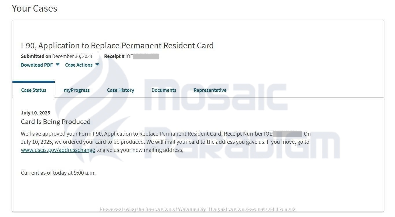 Đây là minh chứng cho việc nếu xử lý đúng quy trình, việc mất thẻ xanh không đồng nghĩa với mất quyền cư trú hợp pháp tại Mỹ. Đội ngũ Mosaic Paradigm đã đồng hành cùng khách hàng để chuẩn bị hồ sơ kỹ lưỡng và giải trình rõ ràng, giúp quá trình xét duyệt diễn ra thuận lợi.