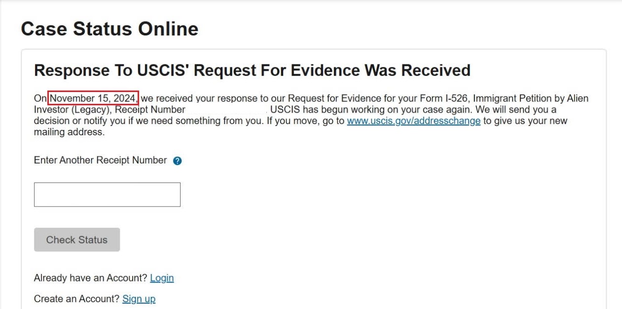 – Ngày nhận thư nộp bổ sung bằng chứng (RFE): 22/08/2024