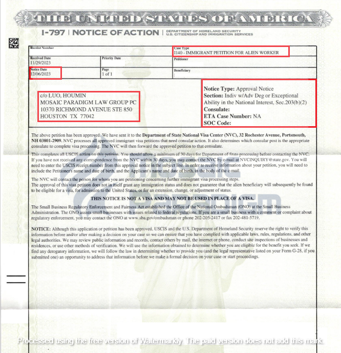 Sau khi được luật sư đánh giá, ông Y chưa đáp ứng đủ các tiêu chí cũng như yêu cầu cao để nộp đơn xin EB-1A, đồng thời các tài liệu chứng minh khách quan còn hạn chế. Với nền tảng giáo dục tại Mỹ và kinh nghiệm nghề nghiệp chuyên môn của ông Y, các luật sư cho rằng ông phù hợp hơn để nộp đơn xin NIW. Dưới sự hướng dẫn chuyên nghiệp từ các luật sư, bằng việc cẩn thận chuẩn bị và sắp xếp tài liệu chứng minh một cách tỉ mỉ, họ đã giúp ông Y chọn lựa người giới thiệu phù hợp và soạn thảo thư giới thiệu, nhấn mạnh những ưu thế cá nhân cũng như lợi ích cho quốc gia Hoa Kỳ của ông. Cuối cùng, đơn xin NIW của ông Y đã được phê duyệt trong vòng 7 ngày nhờ quy trình xử lý cấp tốc.